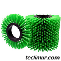 Los cepillos más habituales se fabrican en tiras de acero para los cepillos laterales y con mechones plásticos de polipropileno en el cepillo cilíndrico.