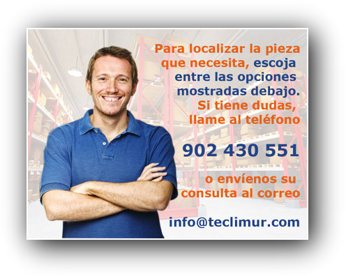 Por supuesto, si no localiza el recambio que busca, póngase en contacto con nuestro departamento comercial en el teléfono 968 676912 o envíenos un e-mail a info@teclimur.com y le ayudaremos a encontrarlo.